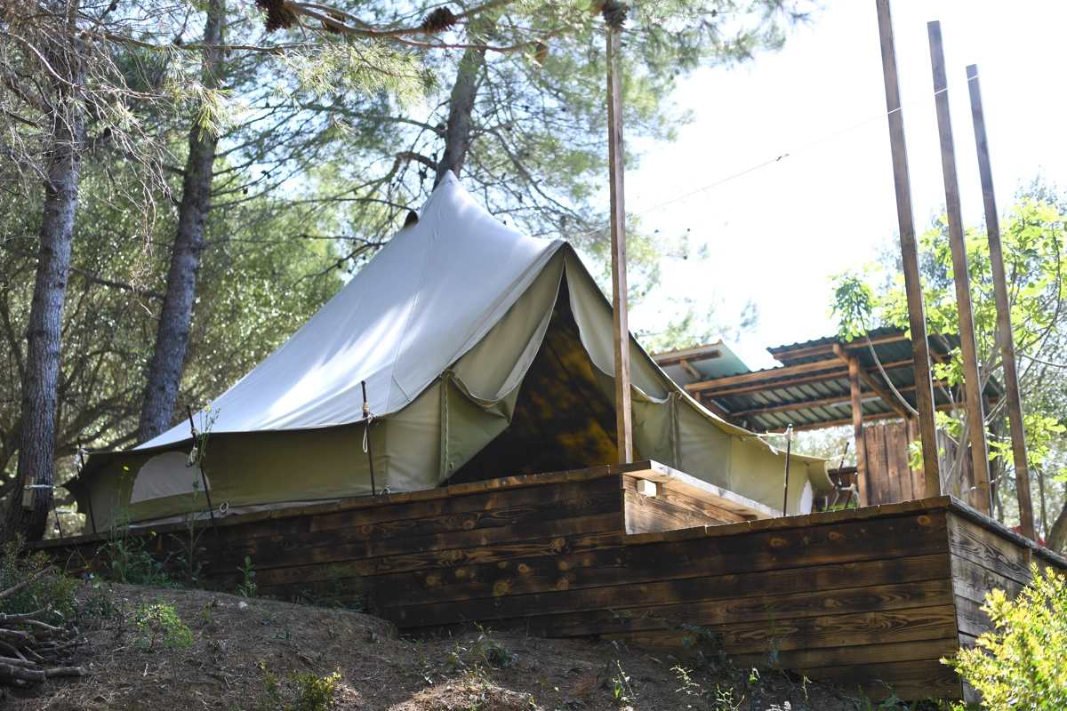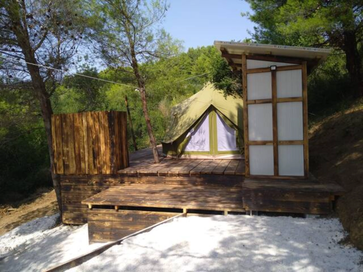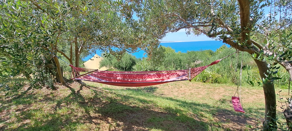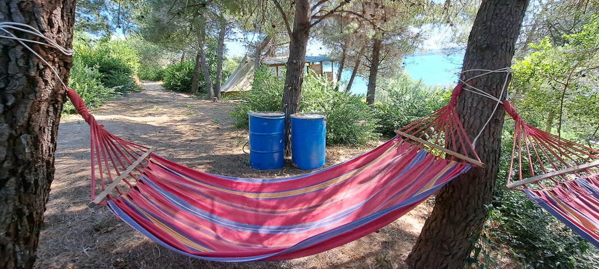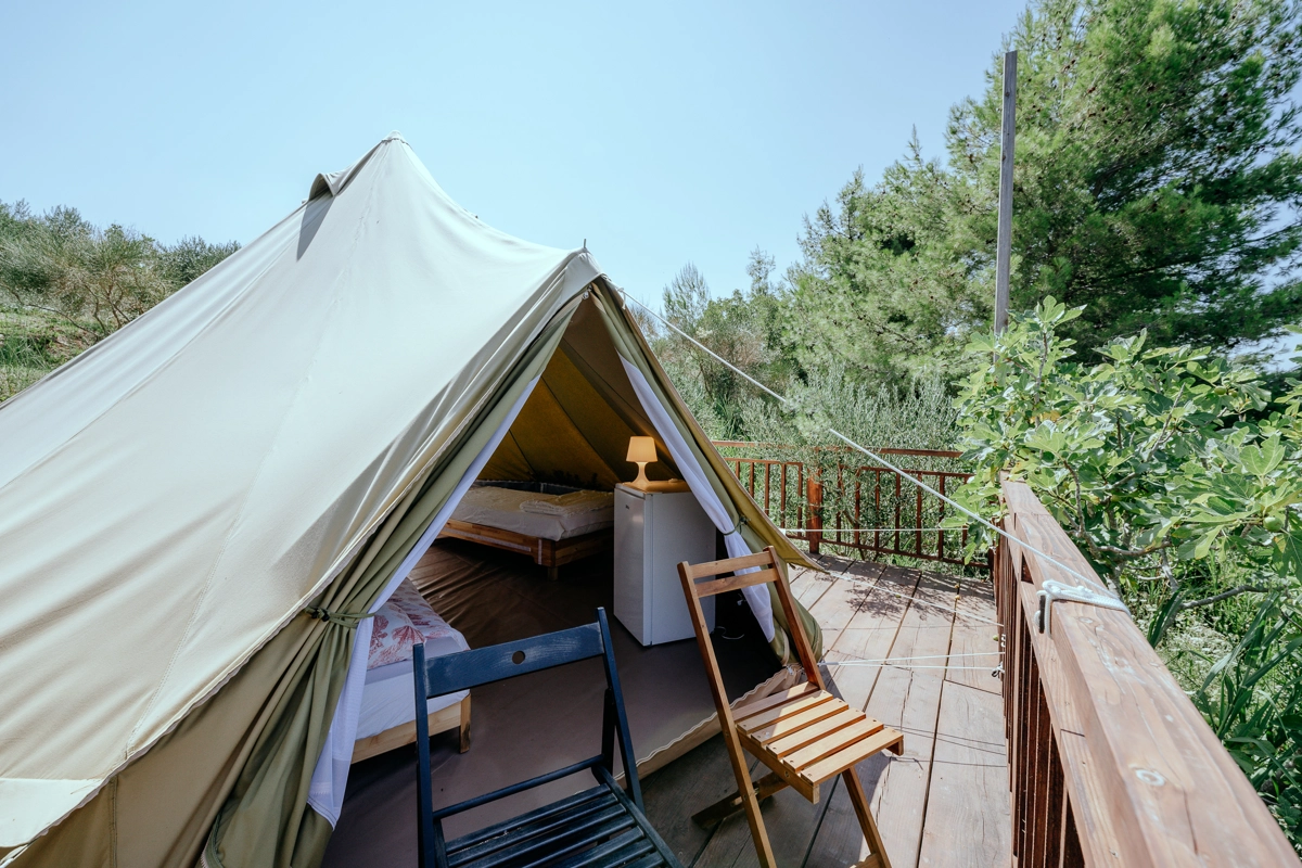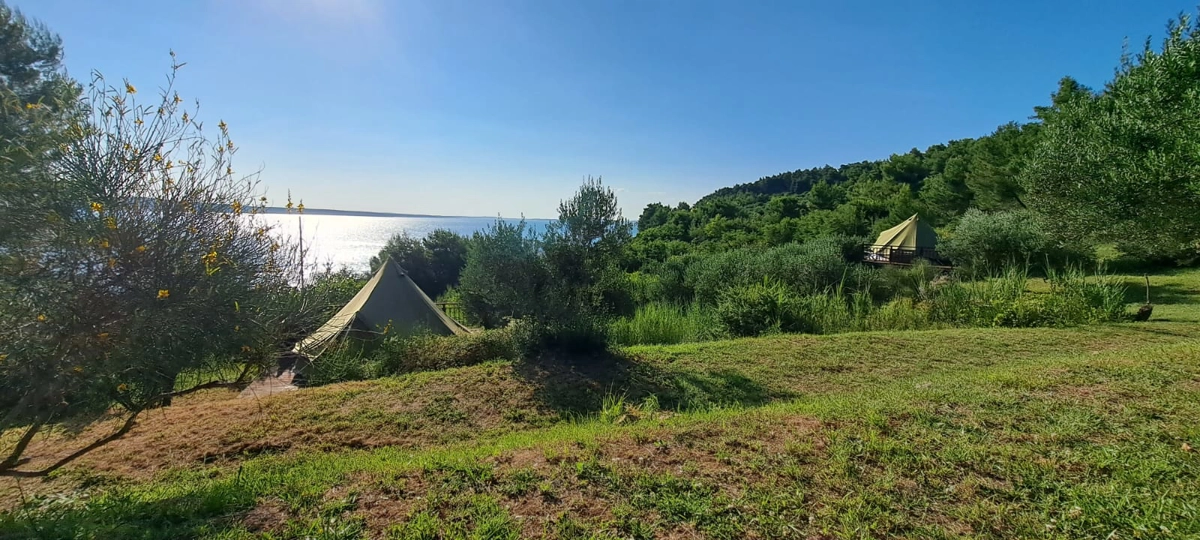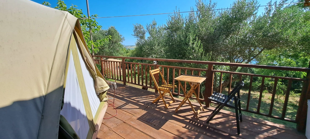Der Campingplatz befindet sich im Olivenhain und 50 m vom Meer entfernt. Die Zelte verfügen über Betten und Bettwäsche. WLAN ist im Campingplatz verfügbar. Die Zufahrt zum Campingplatz erfolgt über eine Schotterstraße, und wir empfehlen die Anreise mit einem höheren Auto.