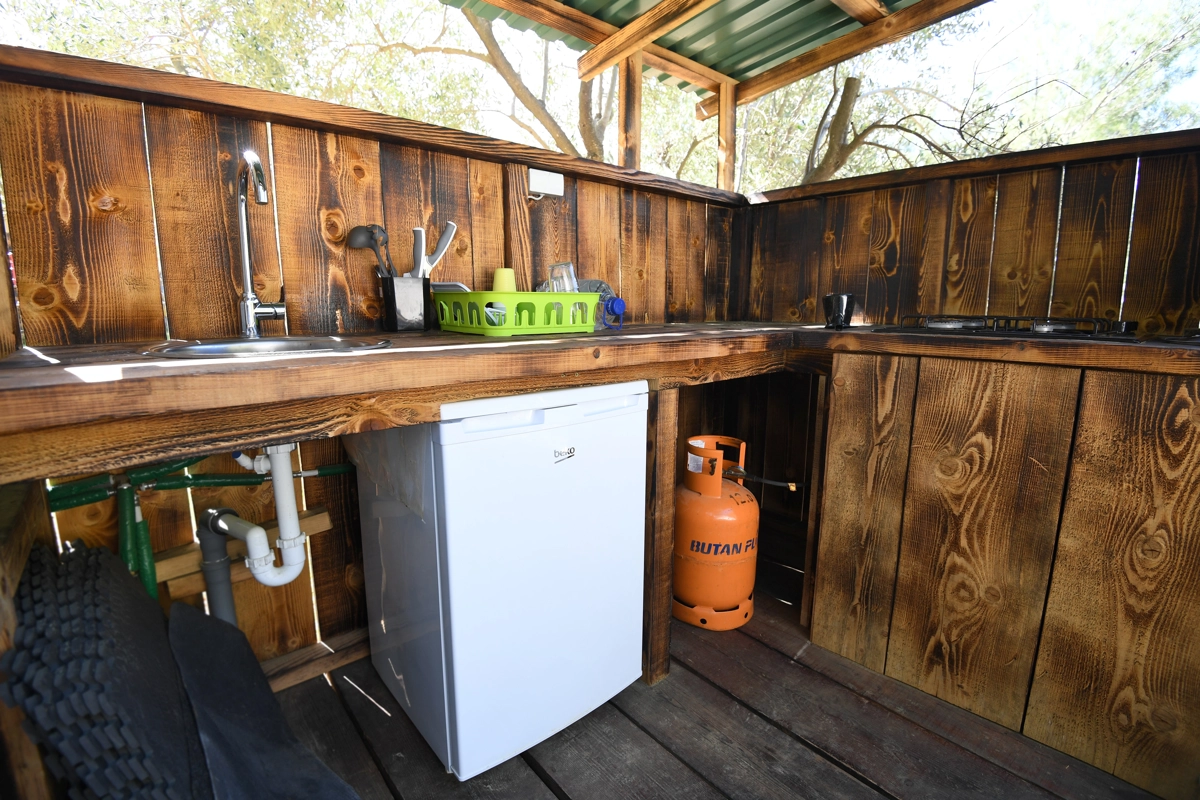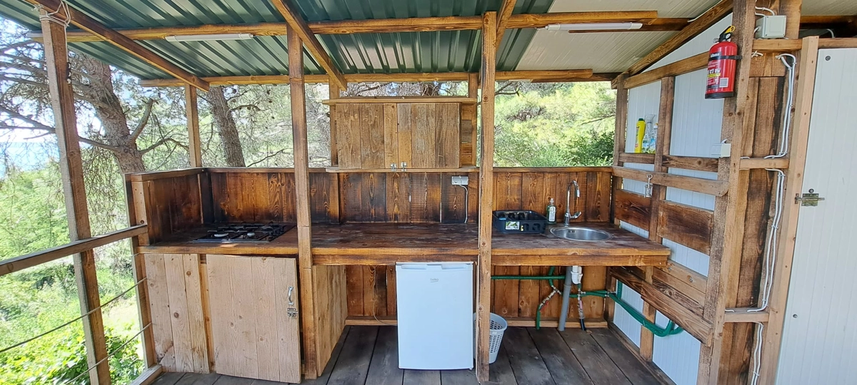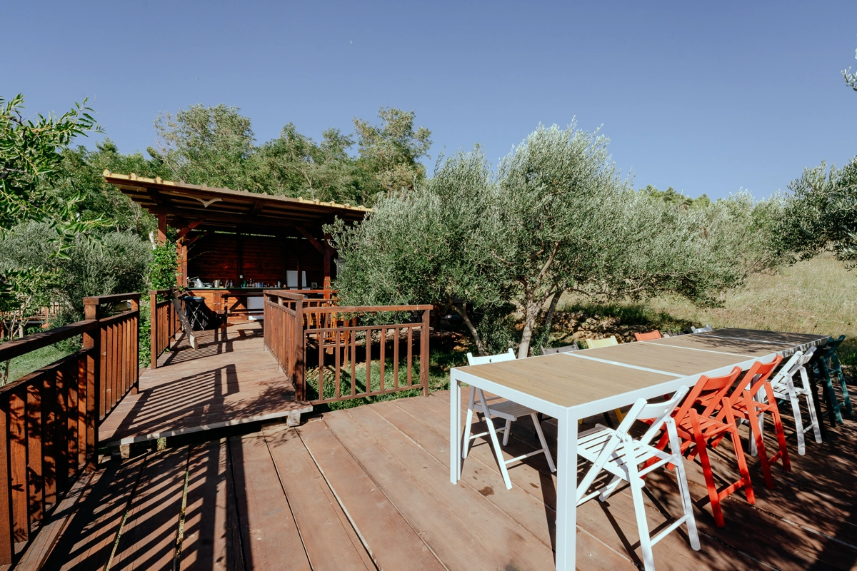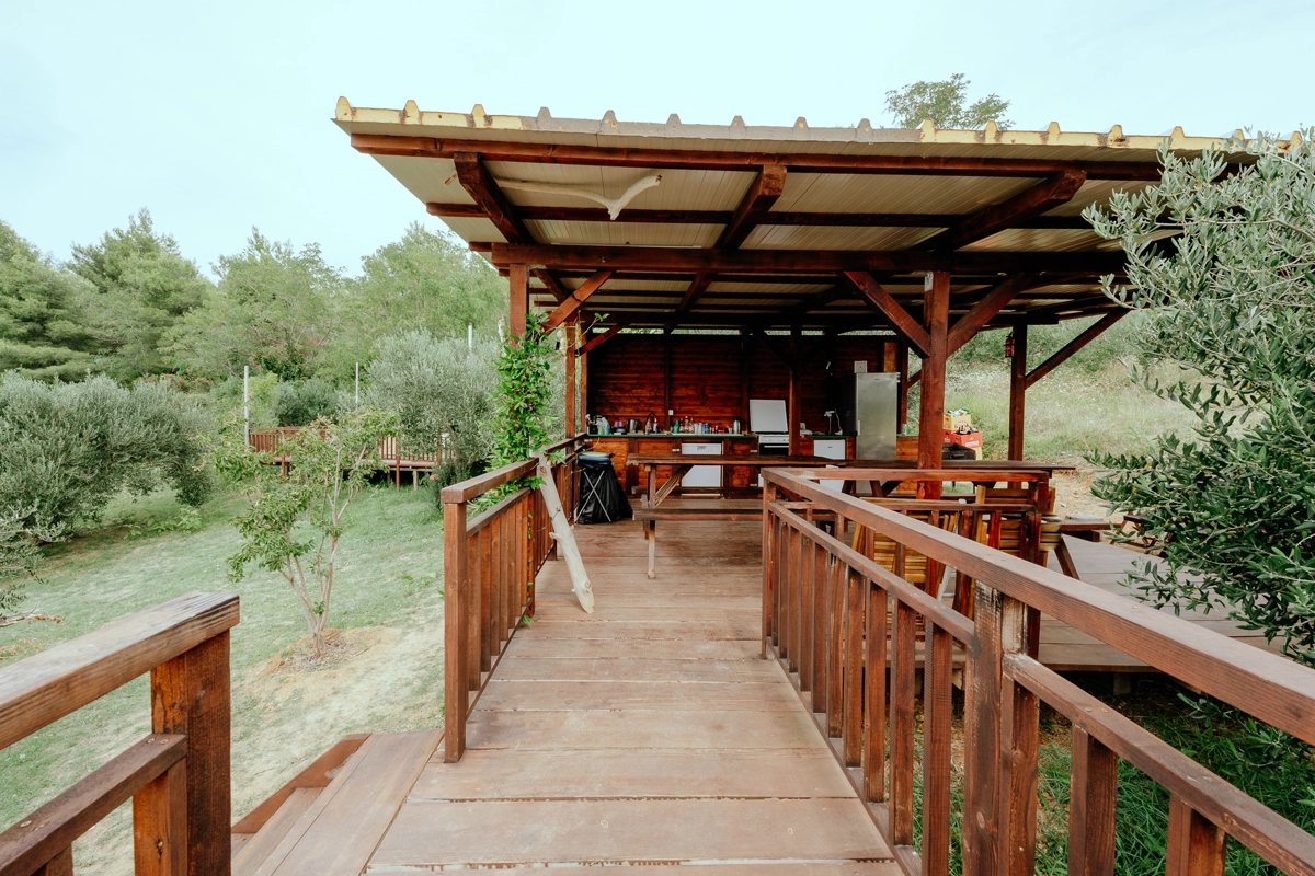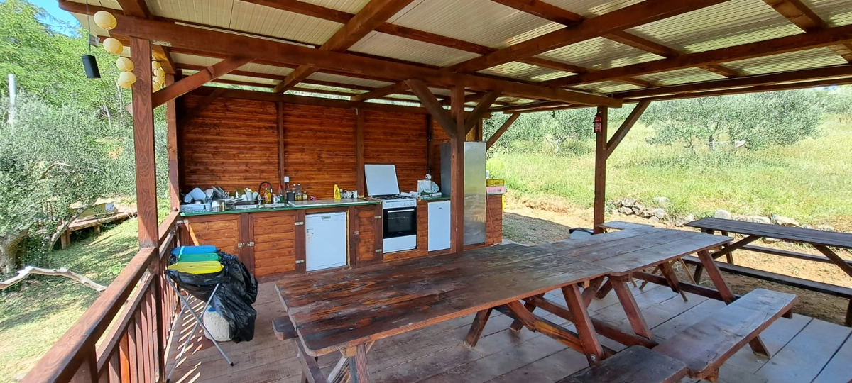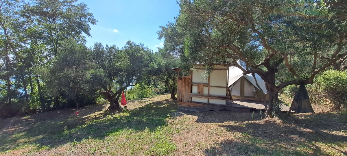 Der Campingplatz befindet sich im Olivenhain und 50 m vom Meer entfernt. Die Zelte verfügen über Betten und Bettwäsche. WLAN ist im Campingplatz verfügbar. Die Zufahrt zum Campingplatz erfolgt über eine Schotterstraße, und wir empfehlen die Anreise mit einem höheren Auto.