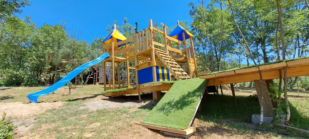 Der Spielplatz befindet sich ca. 2 km von den Zelten entfernt.