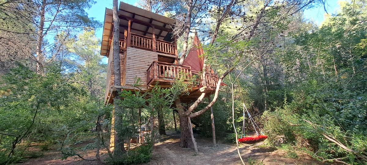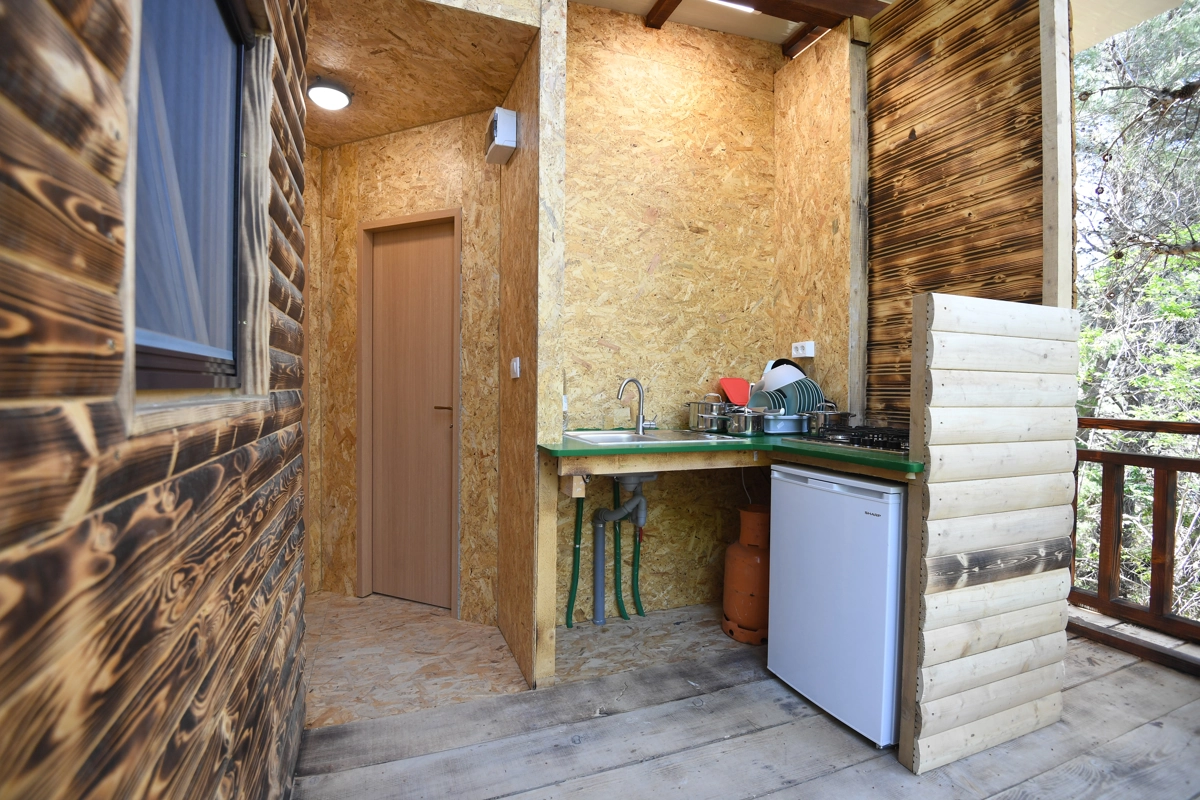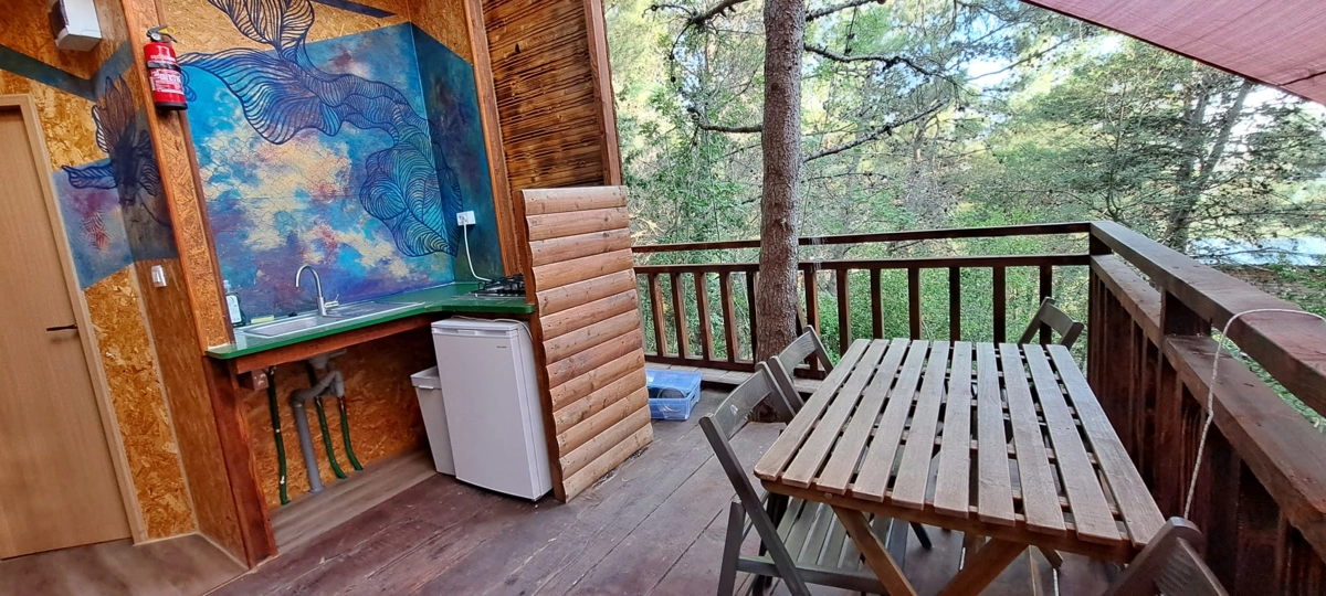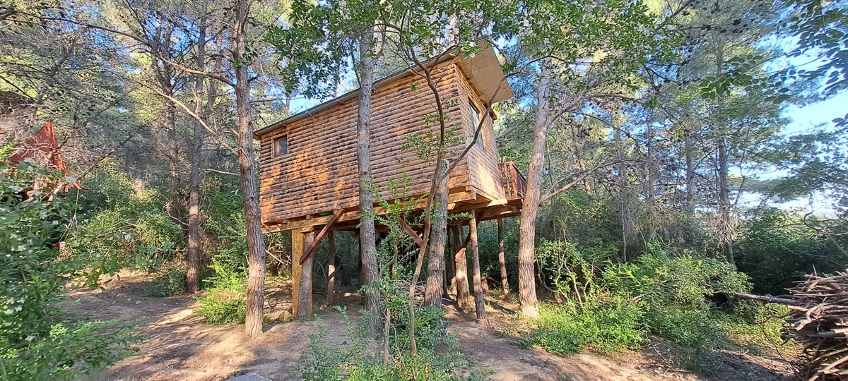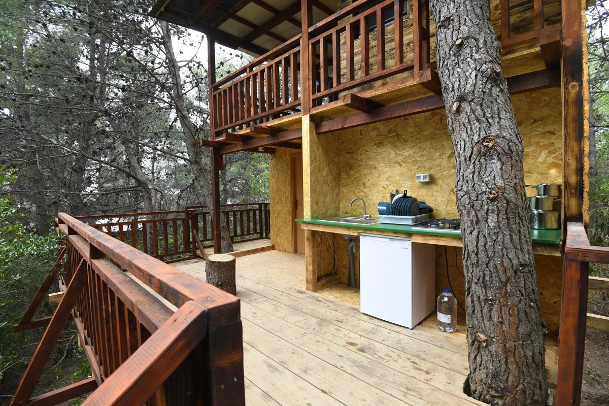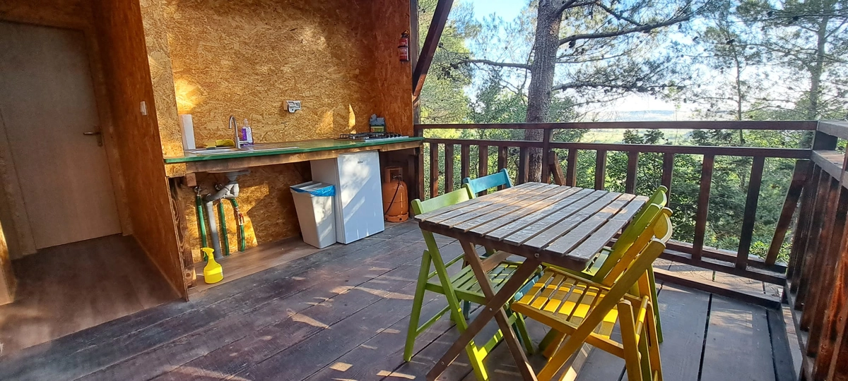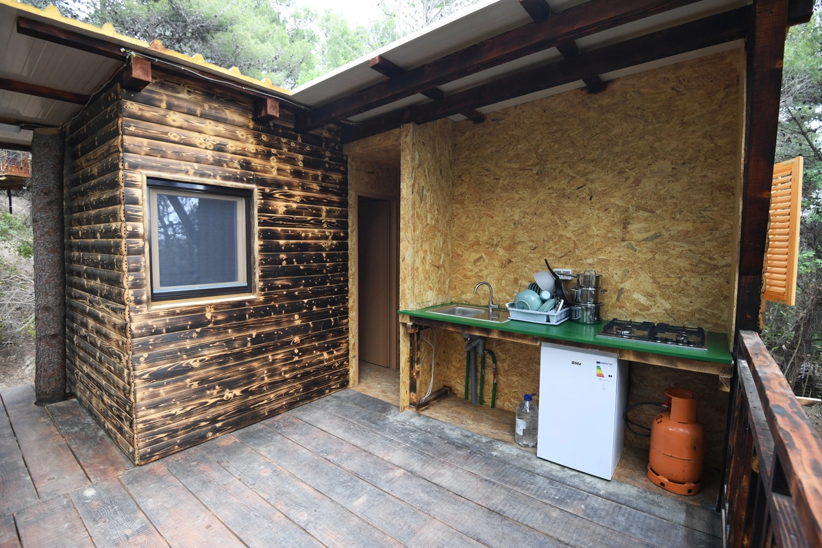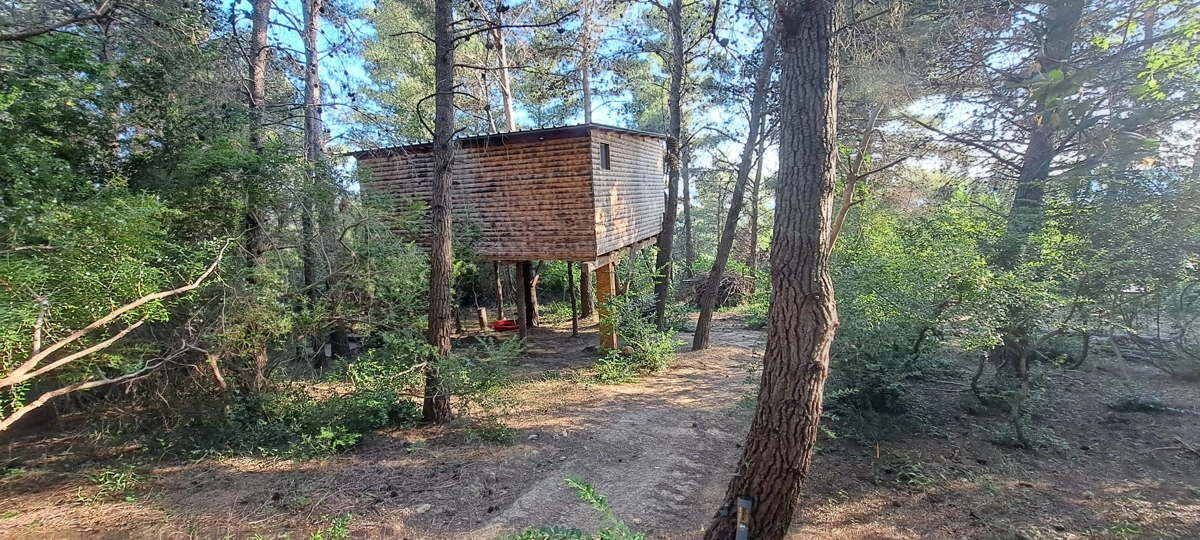 The Treehouses are located in the forest cca. 2,5 km from the beach in Ljubač village. They have beds and linens, bathroom with toilet and outdoor kitchen. Wi-Fi is available. The road to the campsite is a gravel road. We recommend coming with a higher car. The path to the treehouses are stairs built in the ground.